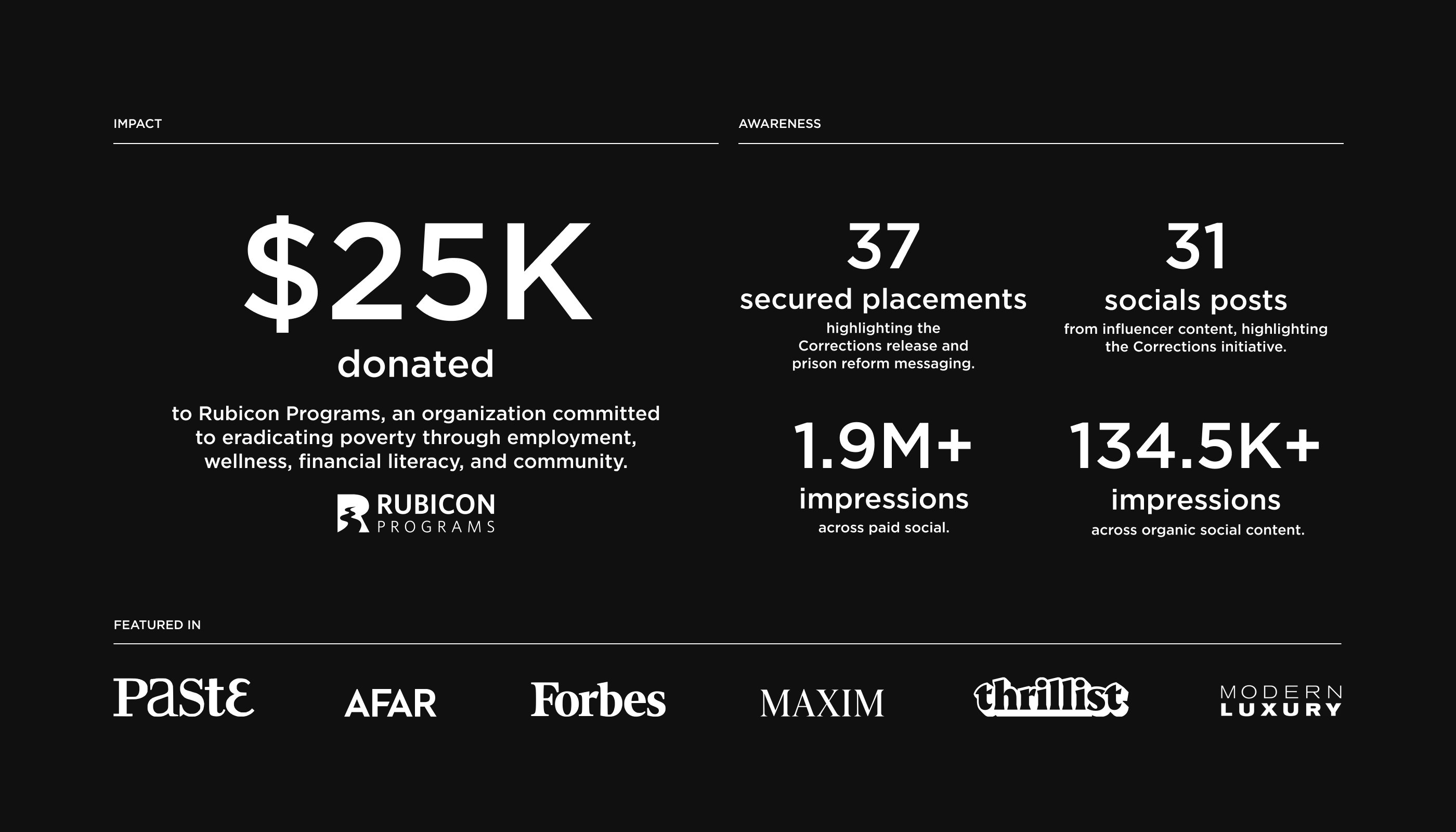 With the launch of Corrections, a limited-edition wine collection, sold exclusively online in a collectable 3-pack, TPWC seeks to change the narrative around mass incarceration. By shining a light on this dark subject, the brand is starting a conversation that inspires hope rather than negativity and leads to reform.