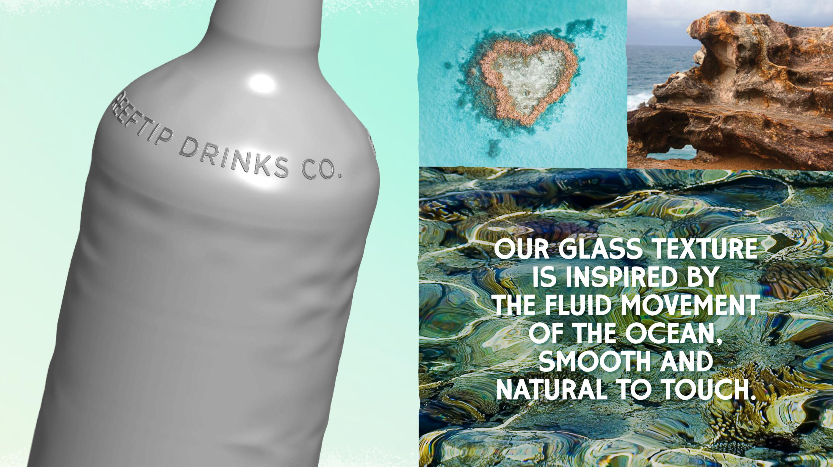 The bottle design has to tick multiple boxes. Not only does it have to be technically feasible and deliver brand storytelling and aesthetic appeal, its shape has to be future-proofed for further variants. The first product release is an Australian Spiced Rum, however the ambition is for Reeftip to be able to offer a variety of spirit styles and work across multiple categories.