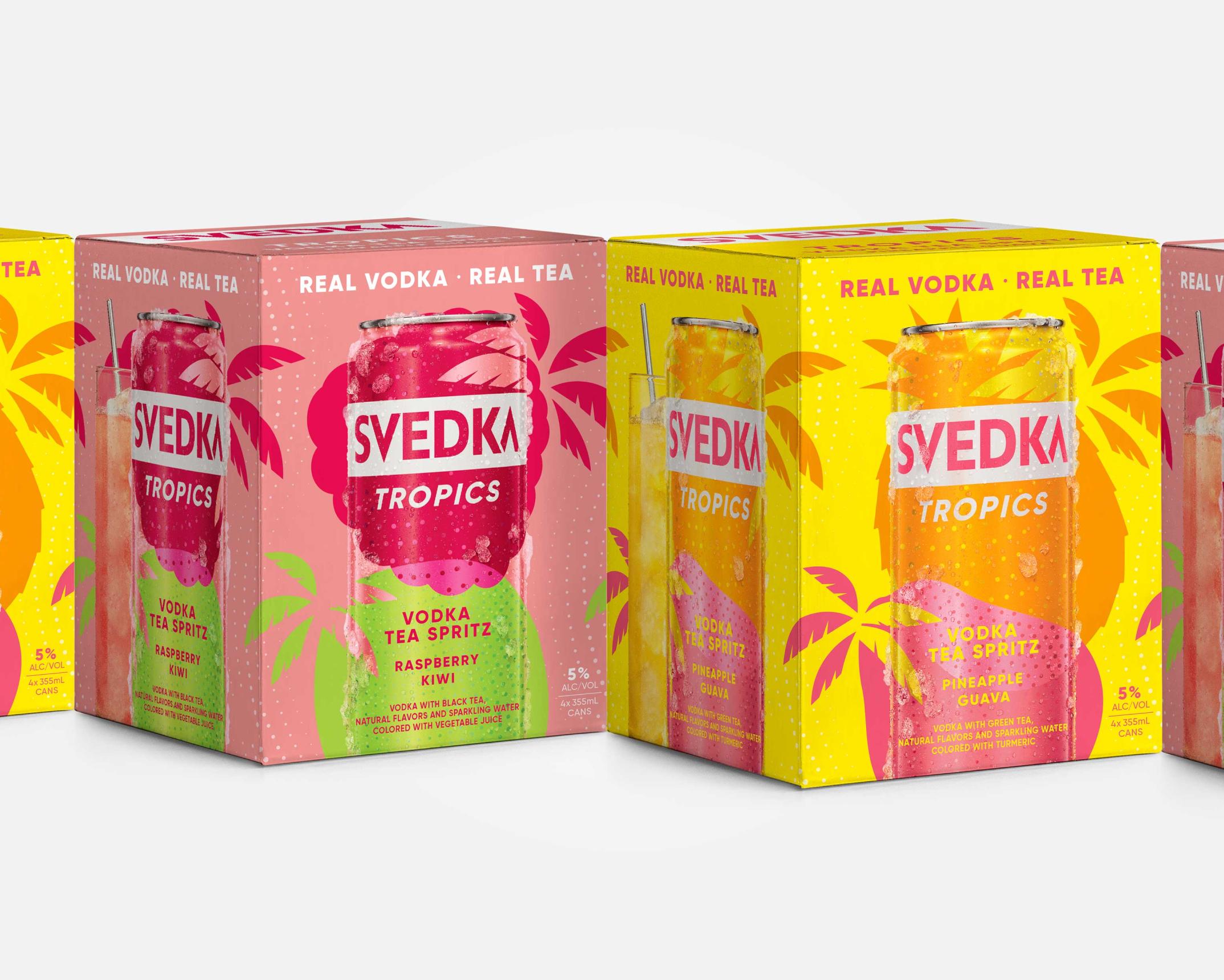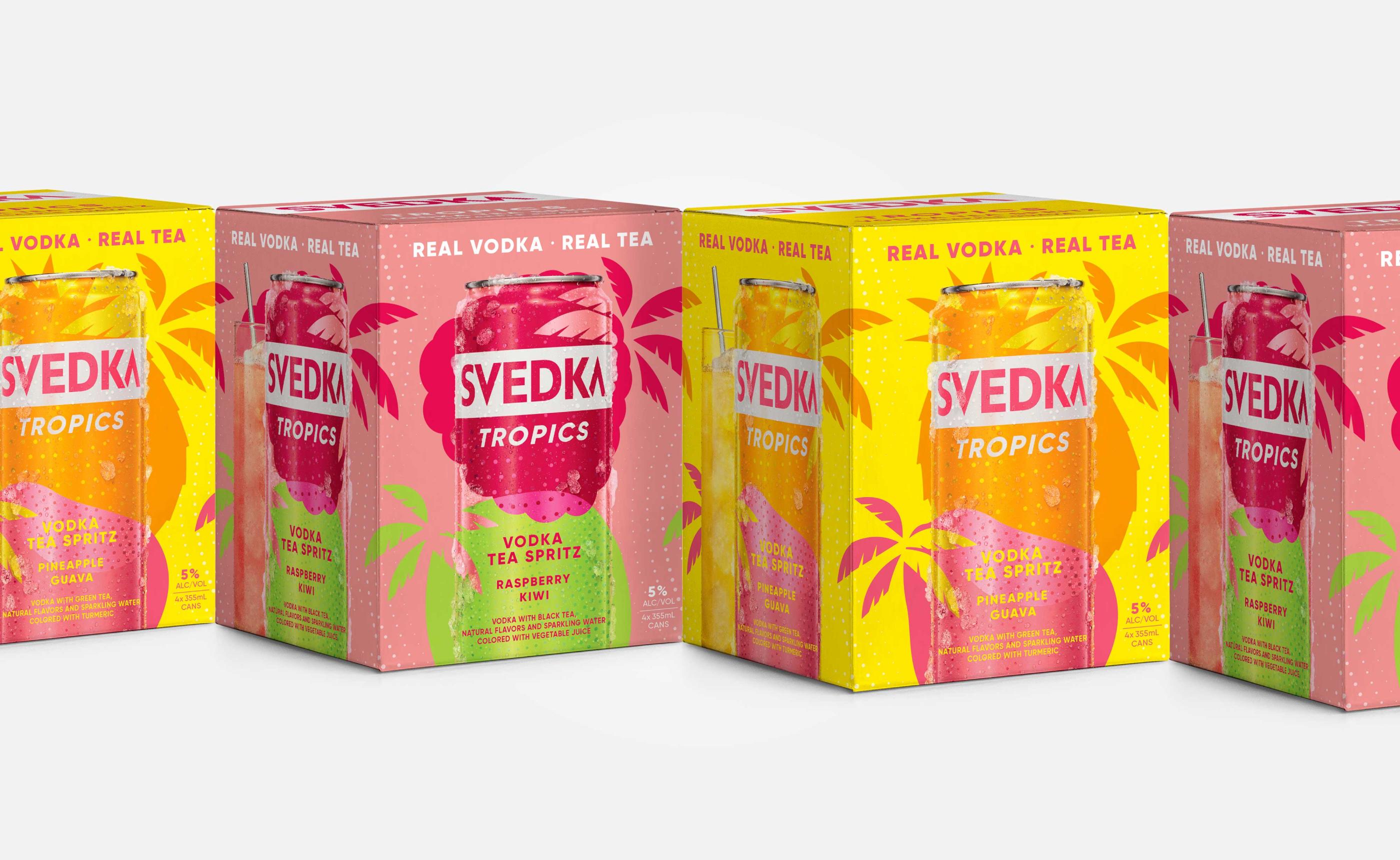 The can design architecture also established the principles for future RTD product extensions. This included the second phase of RTD launches and a range of Svedka Vodka and tropical ice tea flavours. Continuing with the bold fruit shapes across the brand’s portfolio creates consistency and cohesion. Complementing this, are the palm tree silhouette cut-outs which elevate the tropical flavour story and drive home the party occasion.
