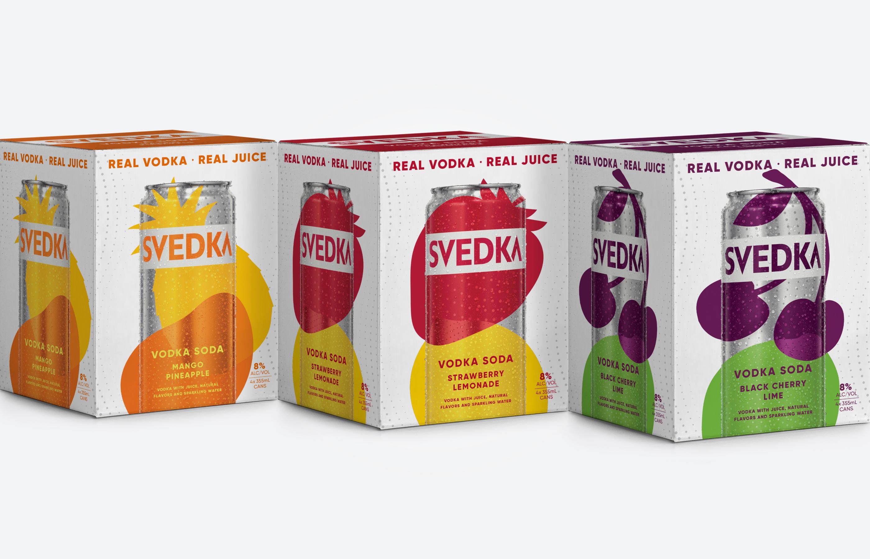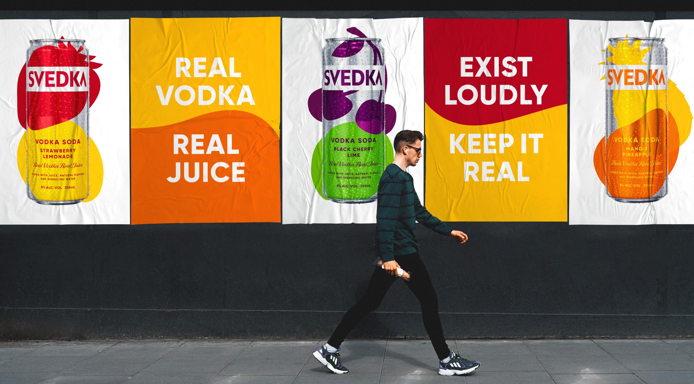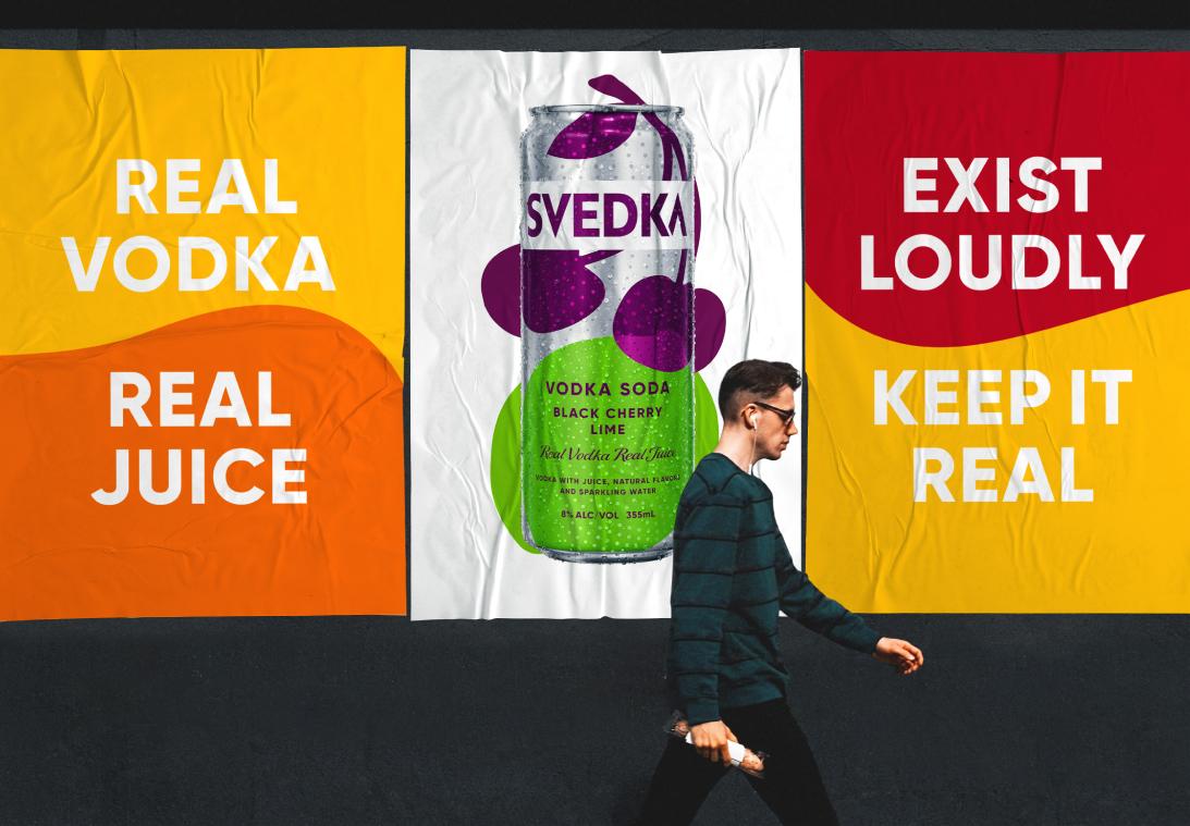 SVEDKA changed that. It’s a straight-up, real and simple vodka soda with a splash of fruit juice. It’s flavoursome, refreshing and at 8% alc. volume, this RTD has a party-starting kick. The bold, simple ingredients within were intrinsic to our design idea and bright, confident expression.